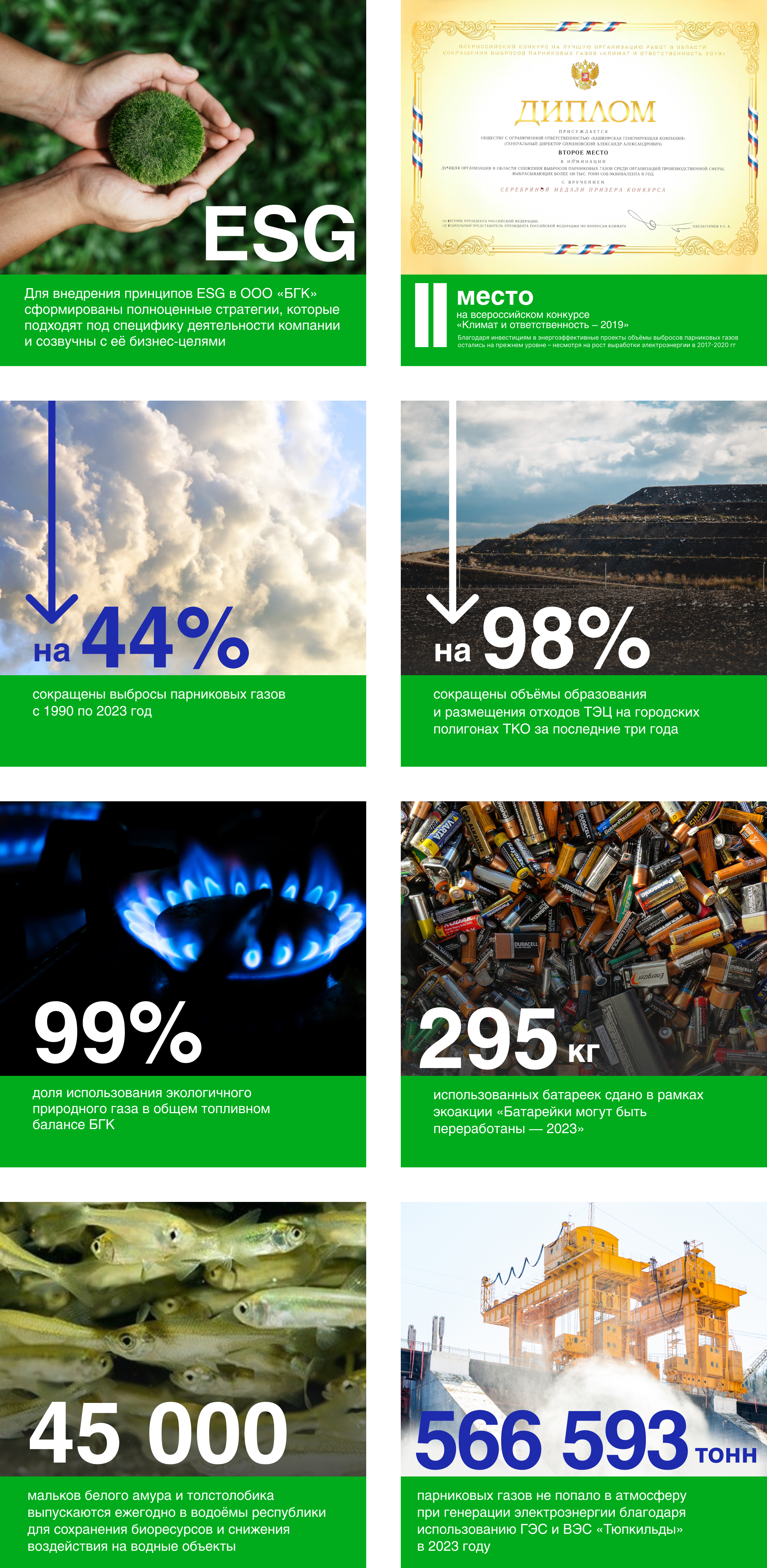 В 2012 году разработана и утверждена экологическая политика ООО «БГК», в 2015 и 2018 годах она актуализирована. В документе определены приоритетные направления деятельности компании в области защиты окружающей среды.
