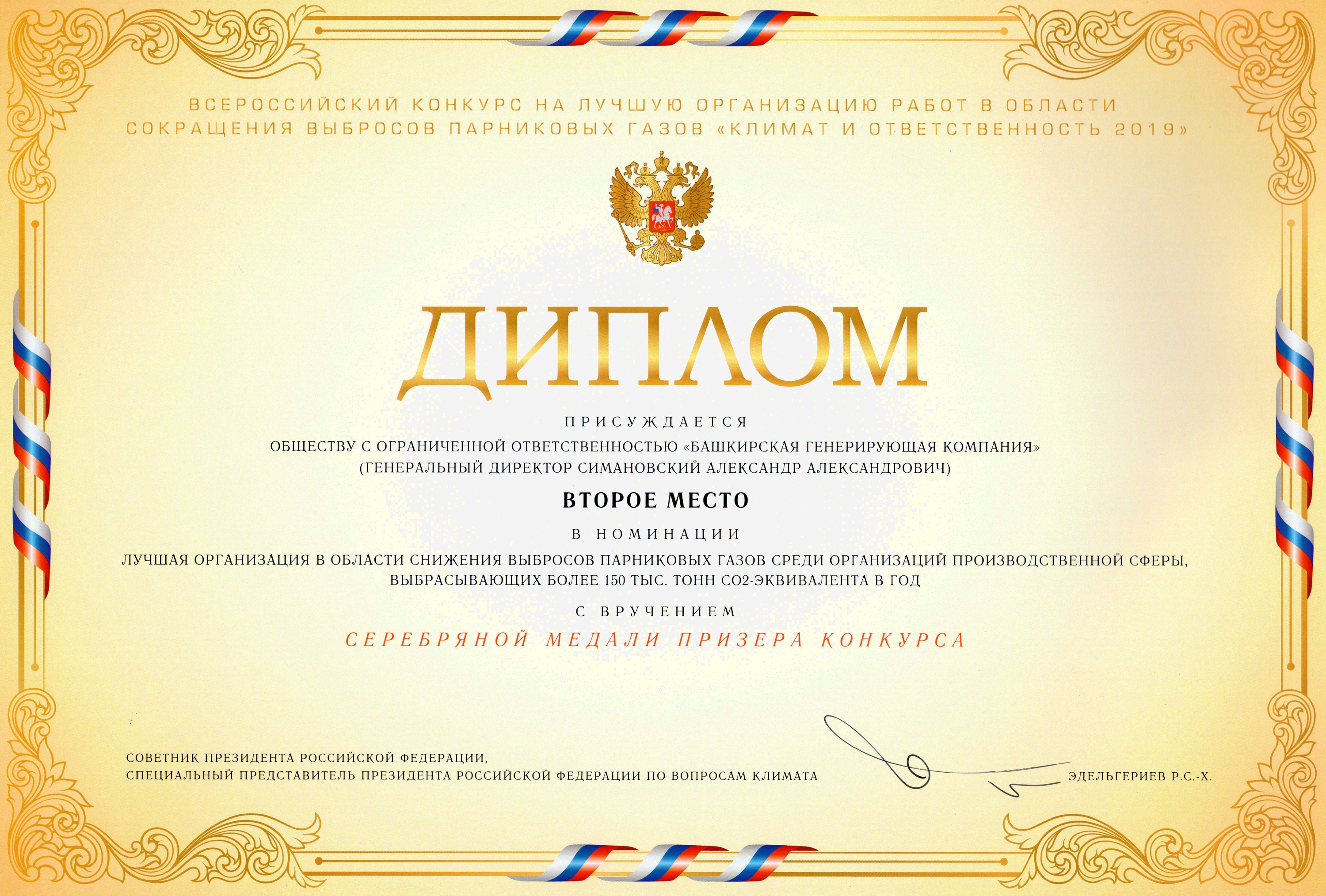 ООО «БГК» заняло второе место во Всероссийском конкурсе на лучшую организацию работ в области сокращения выбросов парниковых газов